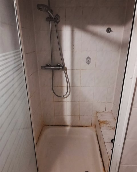 Von alt und unmodern zu luxuriös und zeitlos! Unsere neu gestaltete Dusche kombiniert hochwertige Florim Fliesen (Fliesenhersteller) mit einem eleganten Holzparkett-Style für den Boden und polierten 60×120 cm Wandfliesen für einen edlen Look. Die beiden Duschablagen sorgen für zusätzlichen Komfort und Funktionalität.