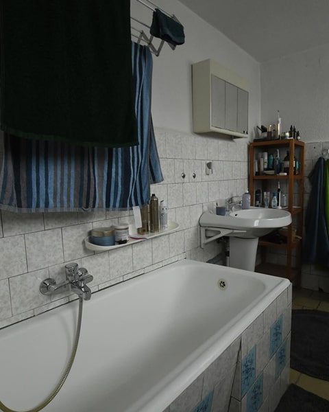 Von in die Jahre gekommen zu modern und einladend! Aus einem alten, unmodernen Badezimmer wurde durch eine vollständige Sanierung ein stilvoller Rückzugsort geschaffen. Hochwertige Holzfliesen verleihen dem Raum eine warme, natürliche Atmosphäre, während die neue moderne Badewanne zum zentralen Highlight des Badezimmers geworden ist.